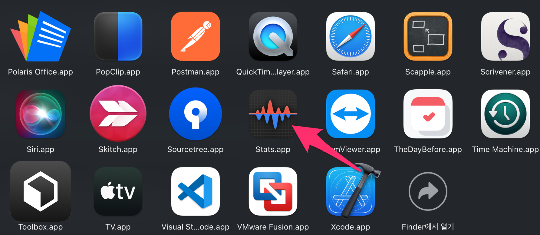 응용 프로그램 폴더 안에 있는 Stats.app을 선택합니다.