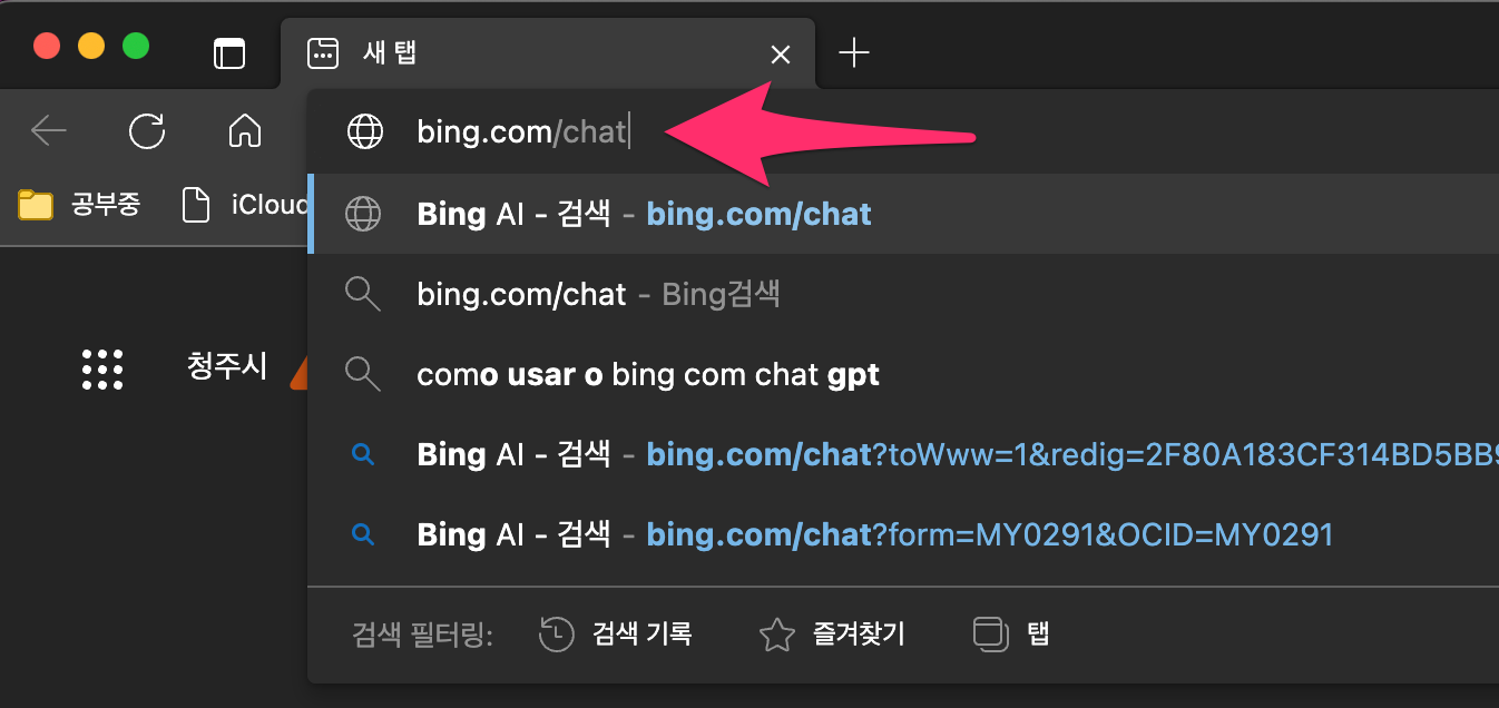 또한 주소창에 bing.com/chat 를 입력해서 이동합니다.