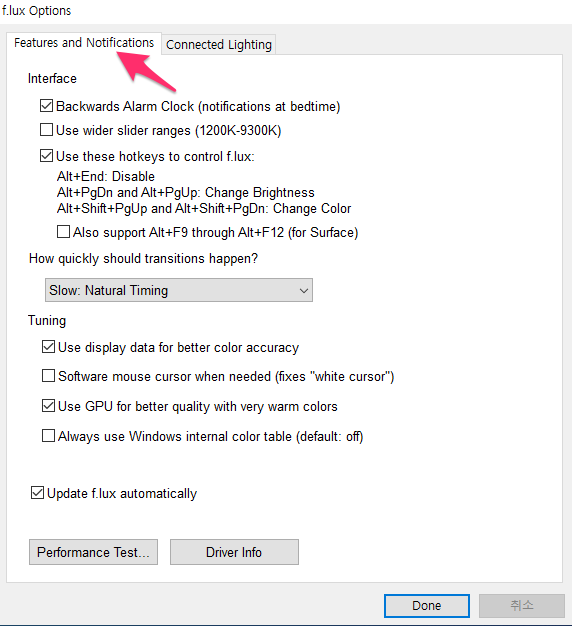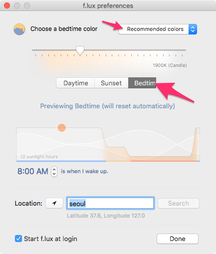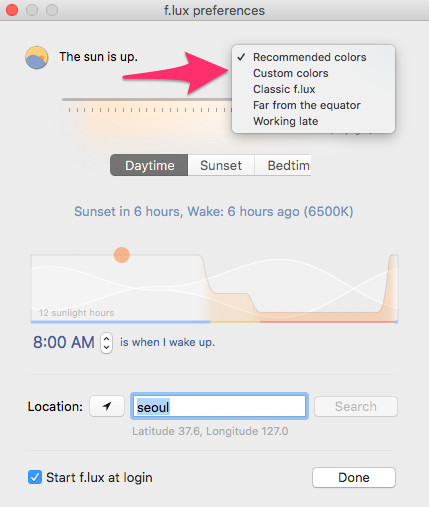 개인적으로 조심해야 할 점은 디자인 작업을 하실 때는 반드시 비활성화하시거나 f.lux를 종료하시길 바랍니다.