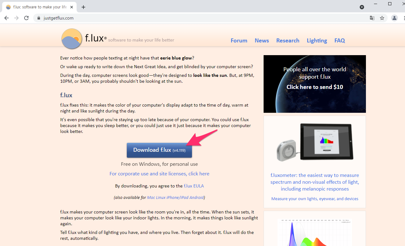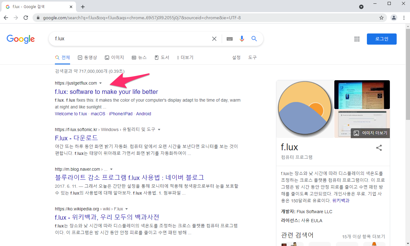 인터넷에서 f.lux를 검색하여 홈페이지로 들어갑니다.