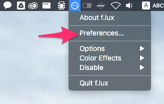 설치가 끝나면 상단 오른쪽에 f.lux 아이콘이 보입니다.