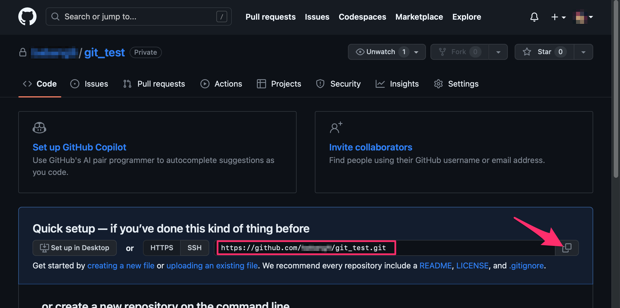 완성된 Git의 주소를 우선 복사합니다.