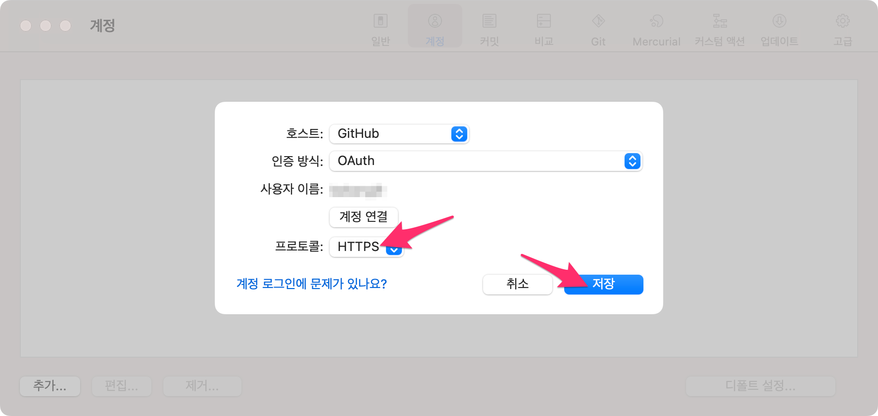 계정 연결이 되면 프로토콜을 HTTPS로 하고 저장합니다.