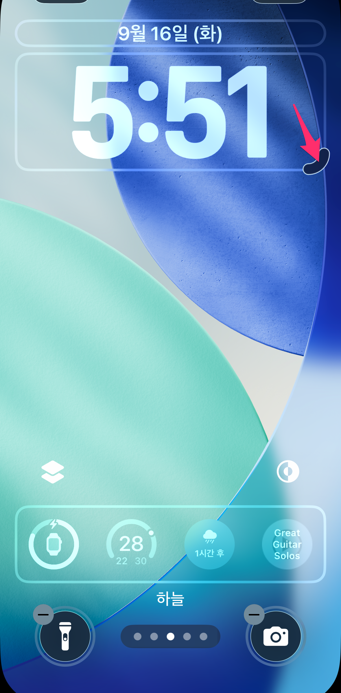 잠금화면의 시간 표시가 큼지막하게 시원시원하네요 ㅎ