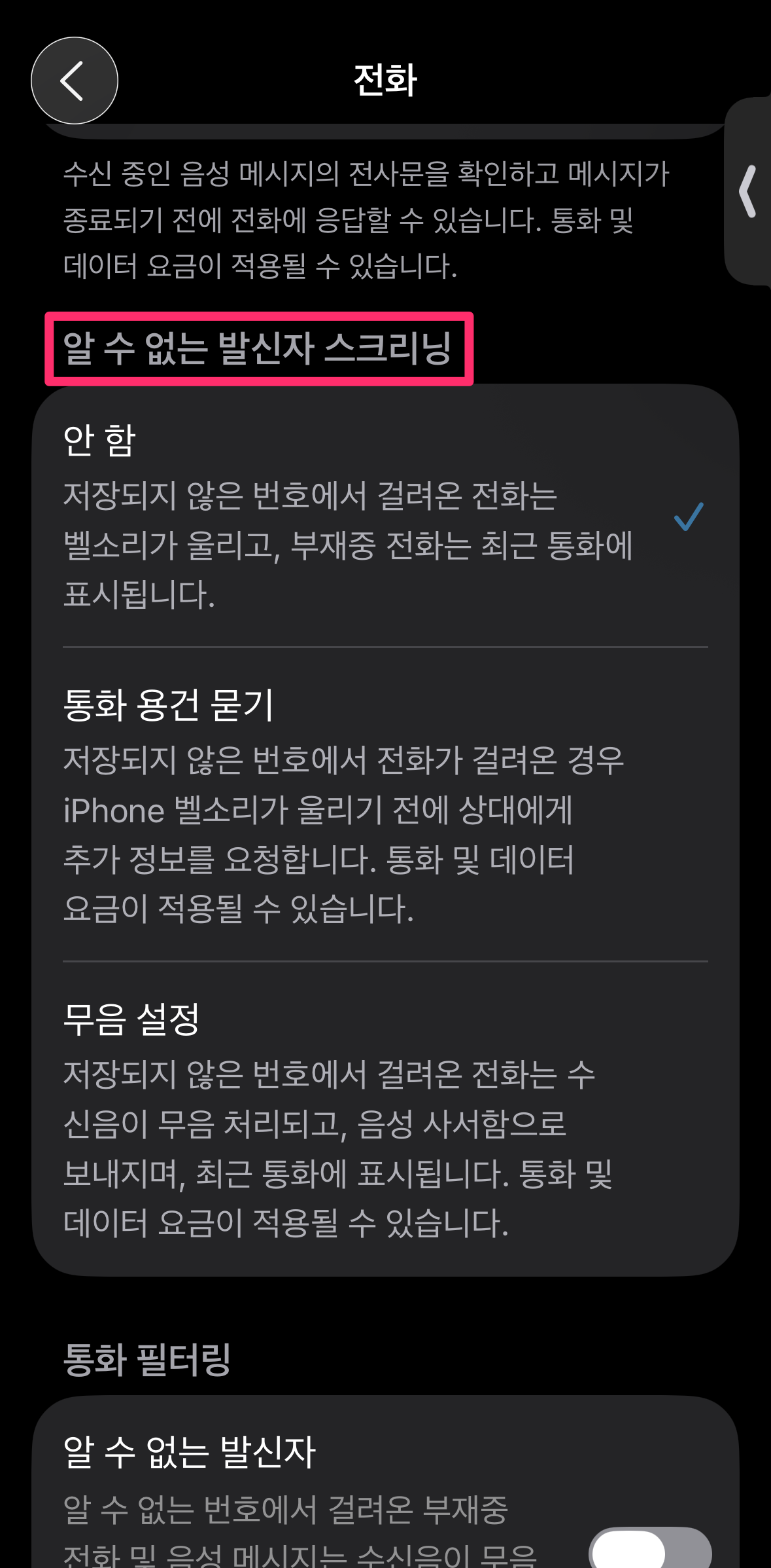 알 수 없는 발신자 스크리닝 - 스팸의 종말