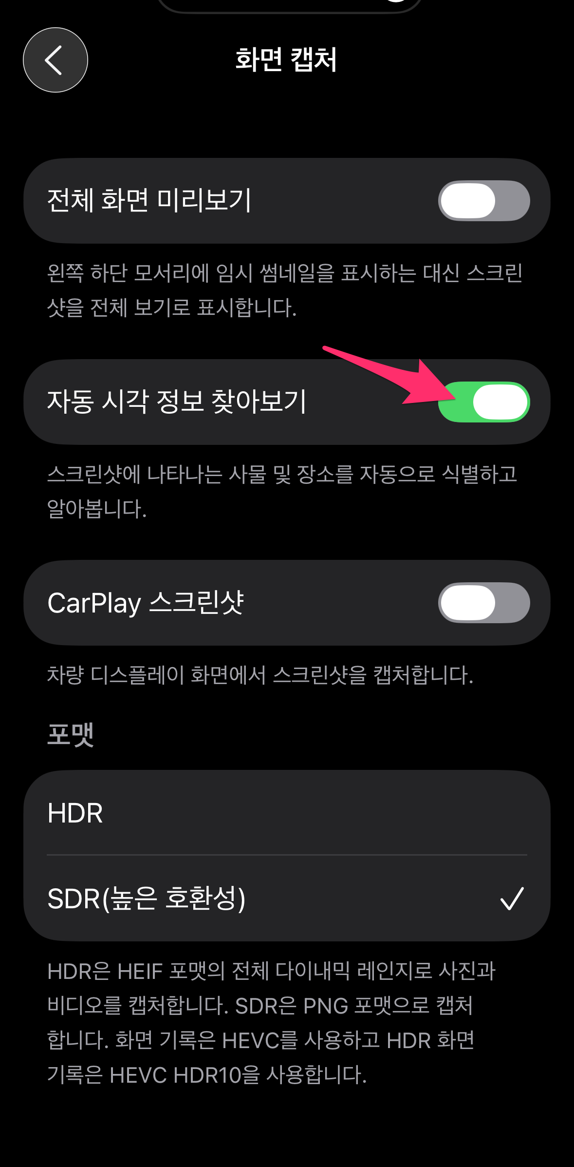화면 캡처 - 자동 시각 정보 찾아보기의 마법