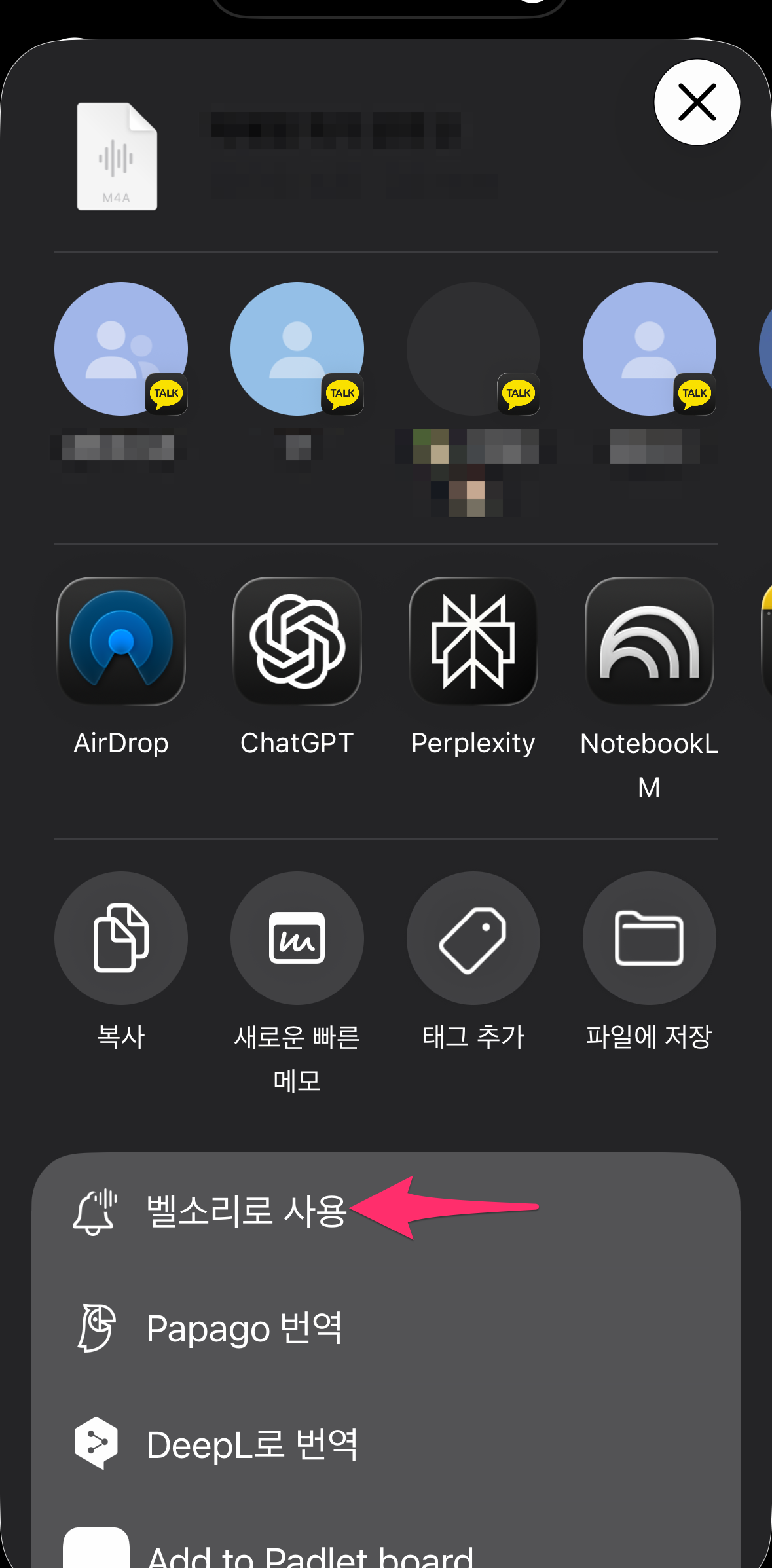 파일앱에서 음악 파일을 선택한 후에 공유하면 벨소리로 사용 기능을 선택합니다.