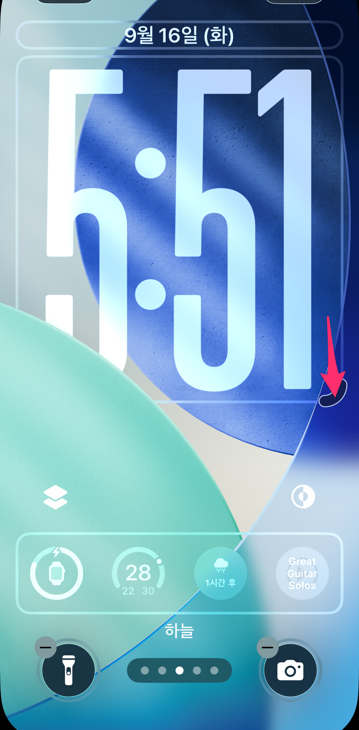 잠금화면의 시간 표시가 큼지막하게 시원시원하네요 ㅎ
