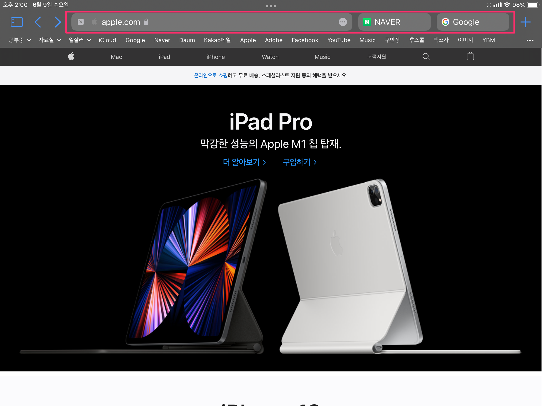 사파리도 상단 주소탭이 이미지처럼 변경되었습니다.