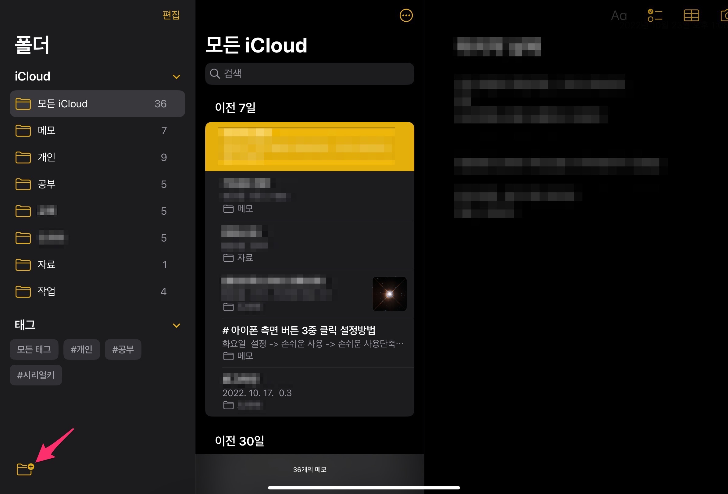 왼쪽 하단에 폴더 생성 아이콘을 선택합니다.