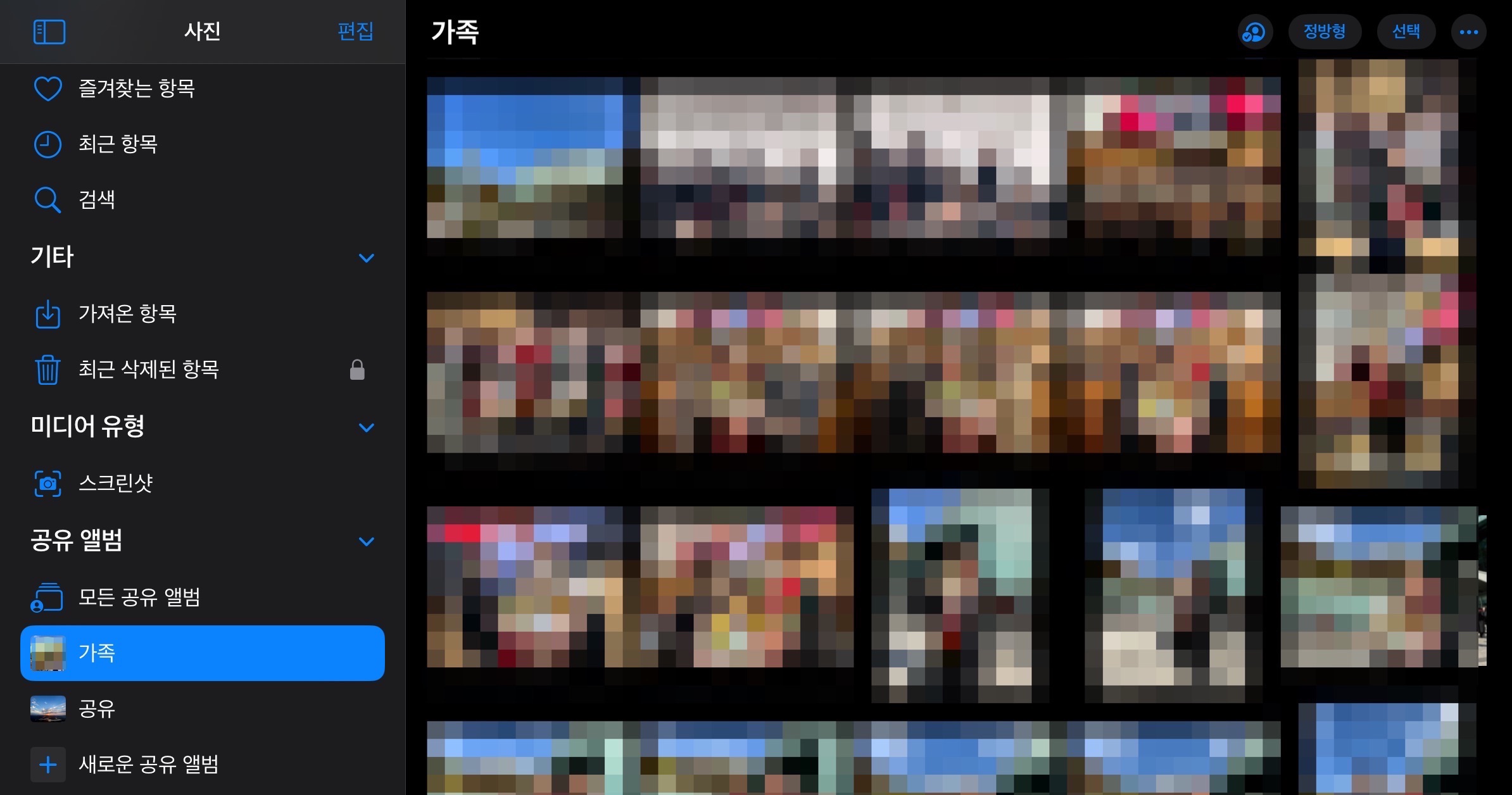 얼마 전에 찍은 사진을 추가하면 가족 공유 앨범에 모두 동기화됩니다.