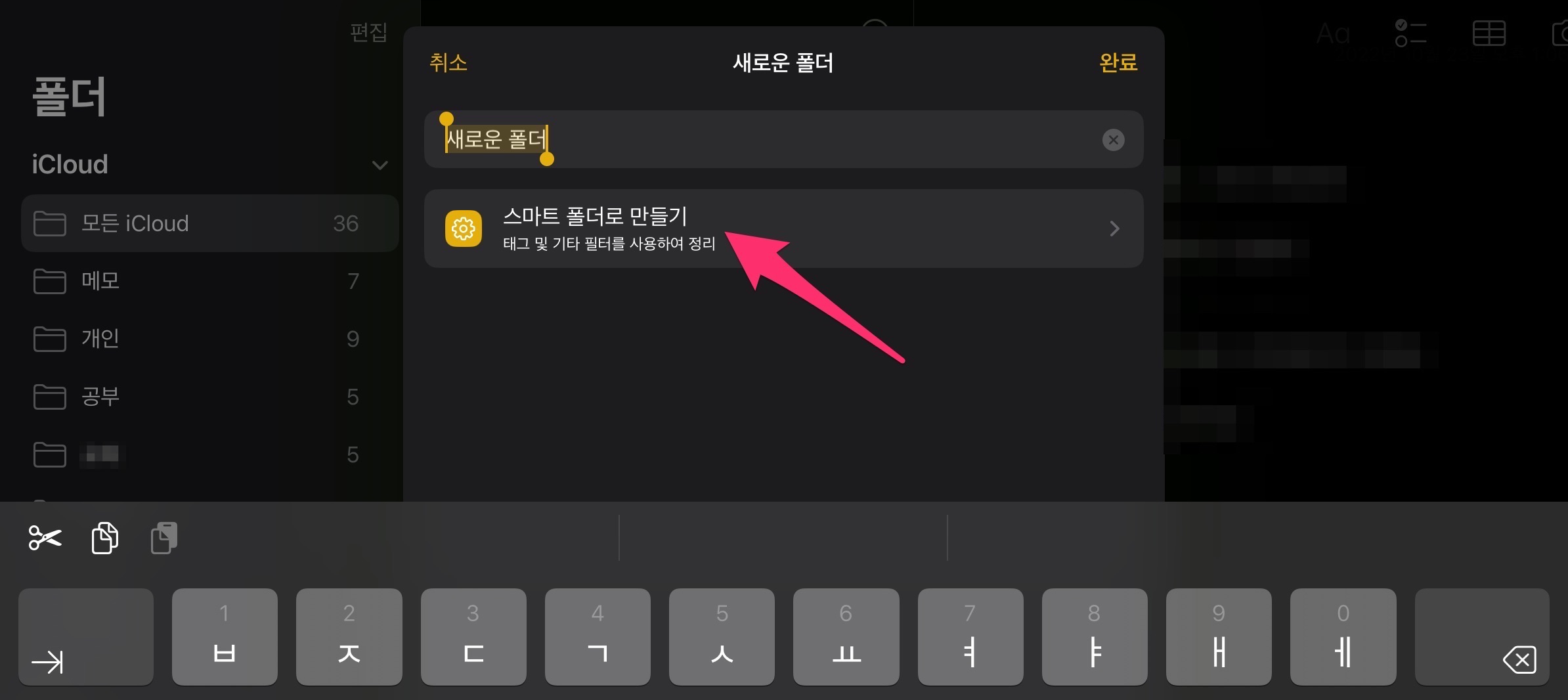 스마트 폴더를 원하지 않으시면 그냥 완료를 누르시면 됩니다.