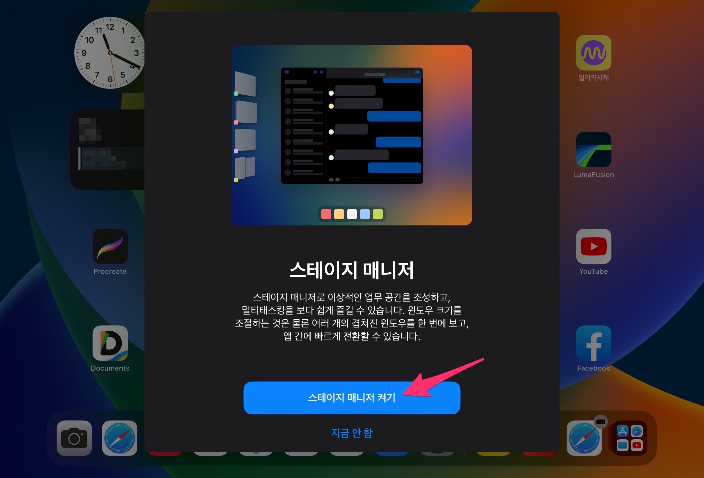 다만, 저는 조금 사용하다가 다시 스테이지 매니저를 비활성화했습니다.