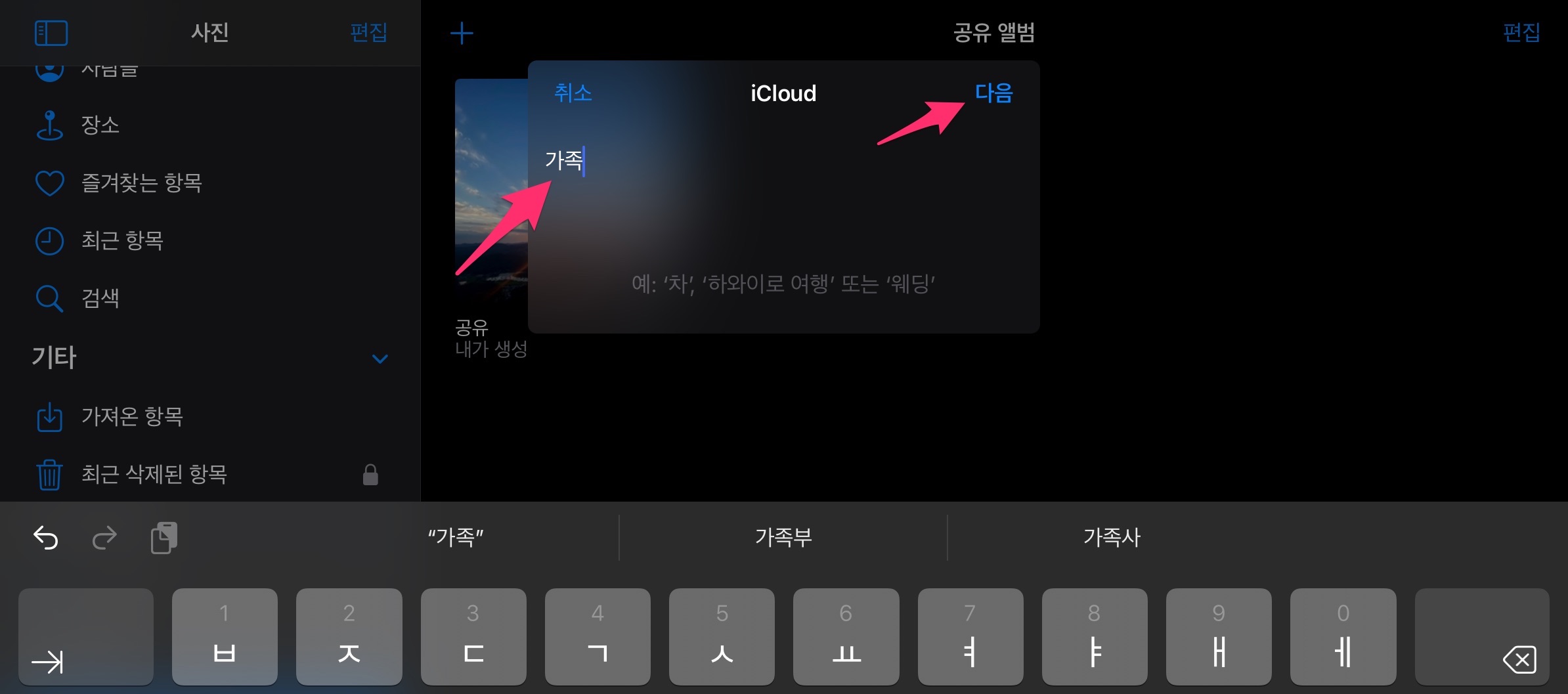 원하는 공유 앨범 이름을 기입하고 다음을 선택합니다.