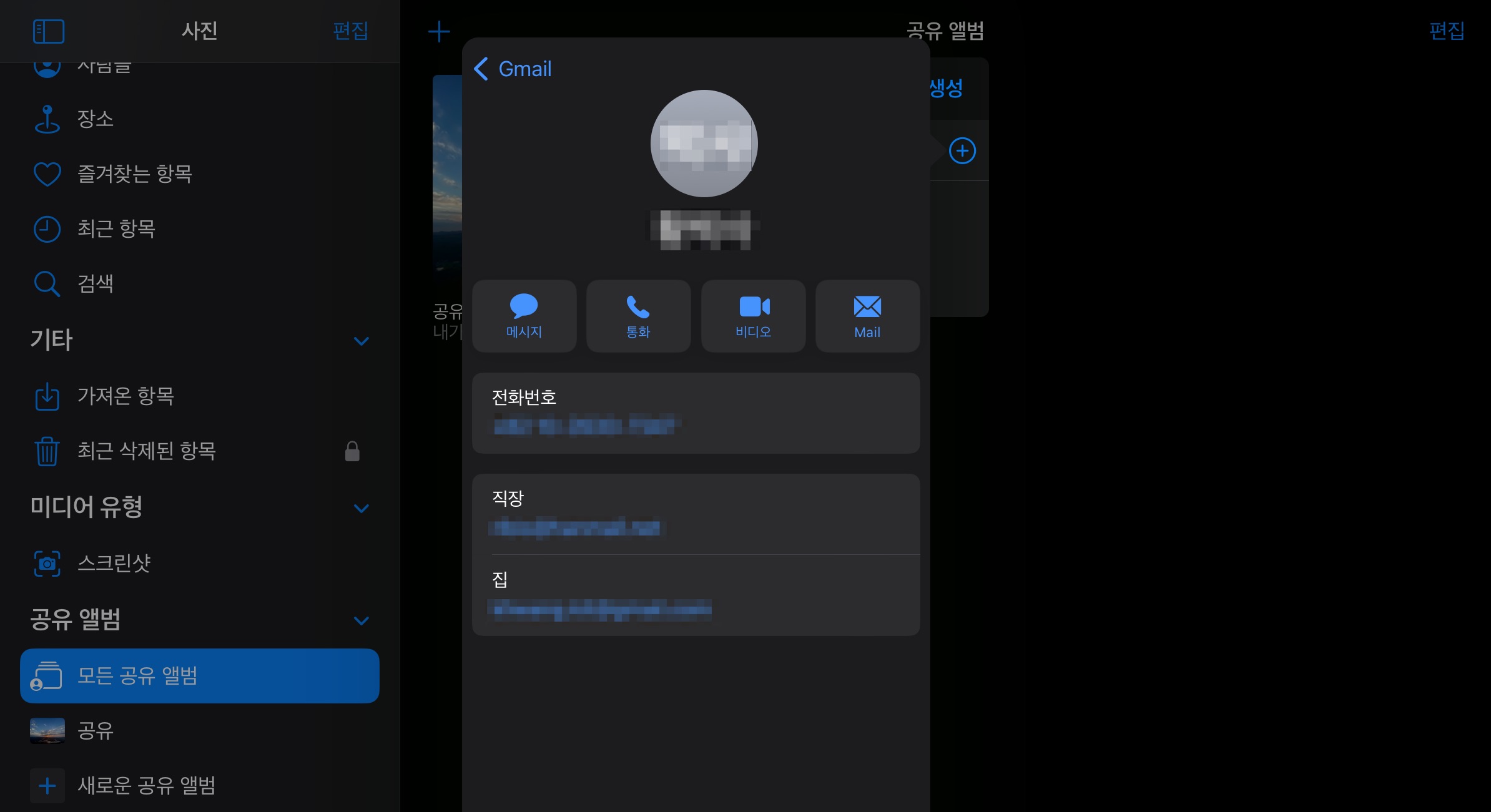 첫 번째로 소개하는 공유 보관함이 있네요. 우선 계속을 선택하고 왼쪽 공유 앨범에 있는 새로운 공유 앨범을 선택합니다.