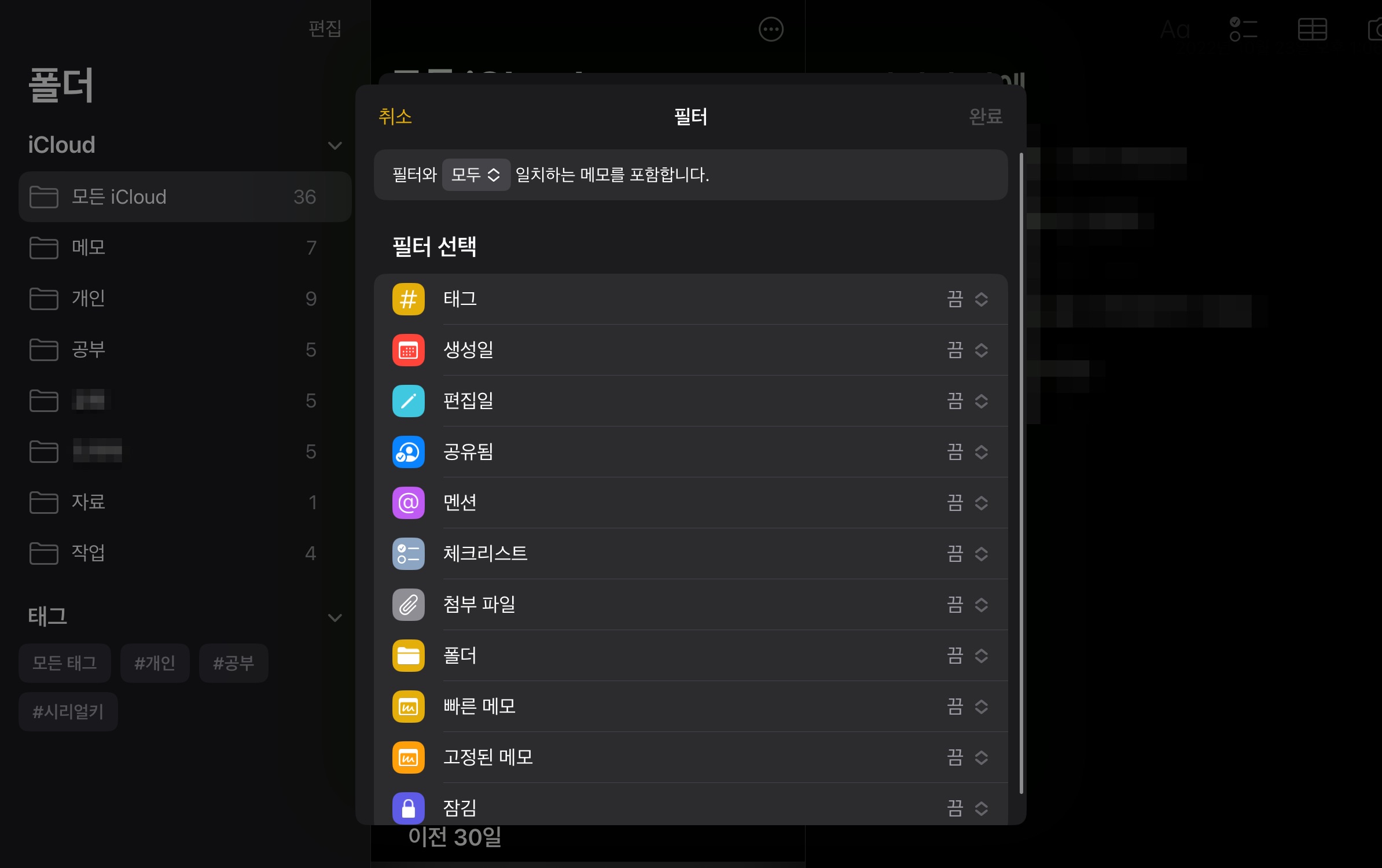 태그, 생성일, 편집일 같은 조건을 잘 조합하면 스마트한 정리가 되고 폴더 안으로 들어오게 됩니다.