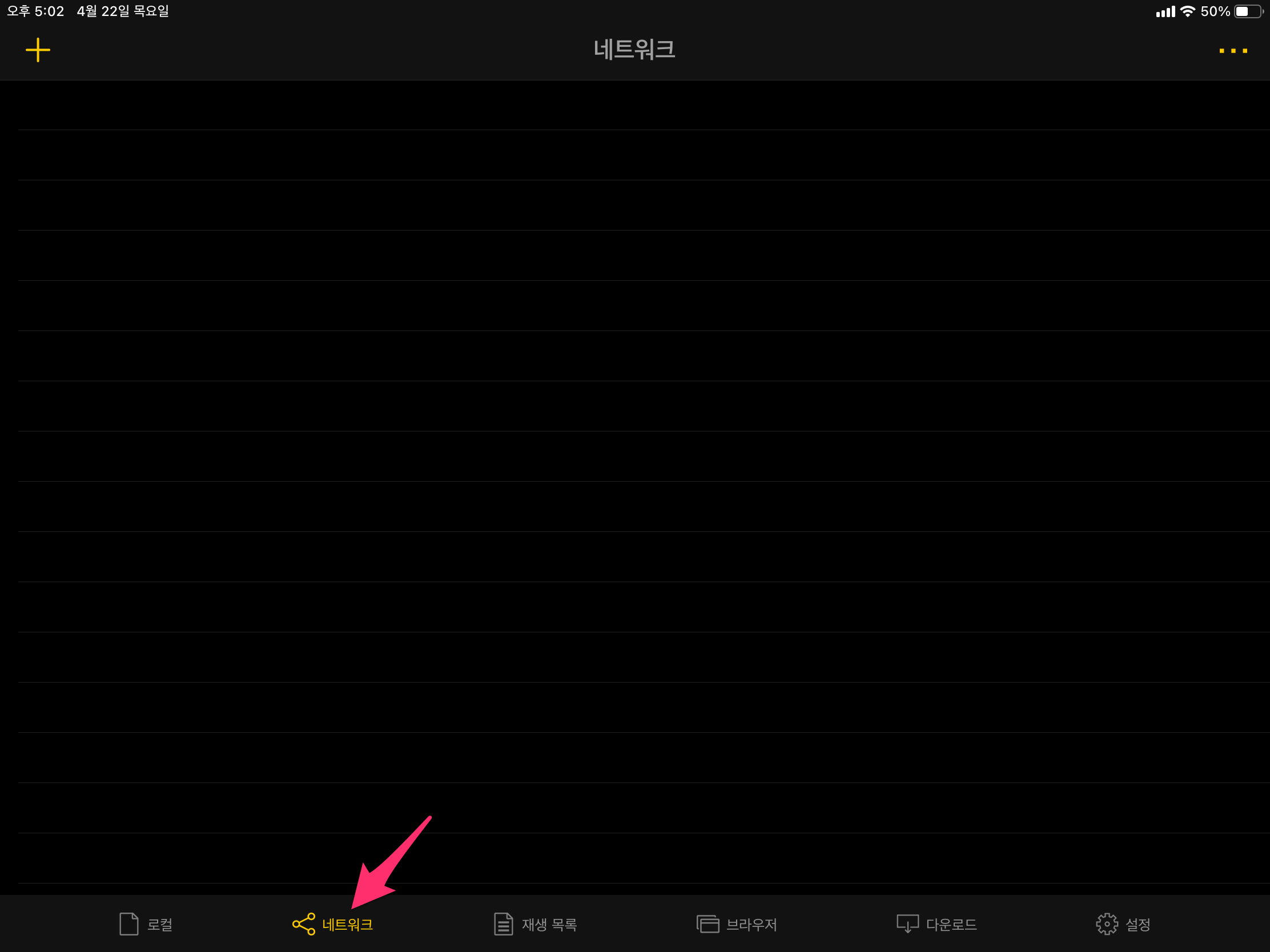 하단에 네트워크 메뉴를 선택합니다.