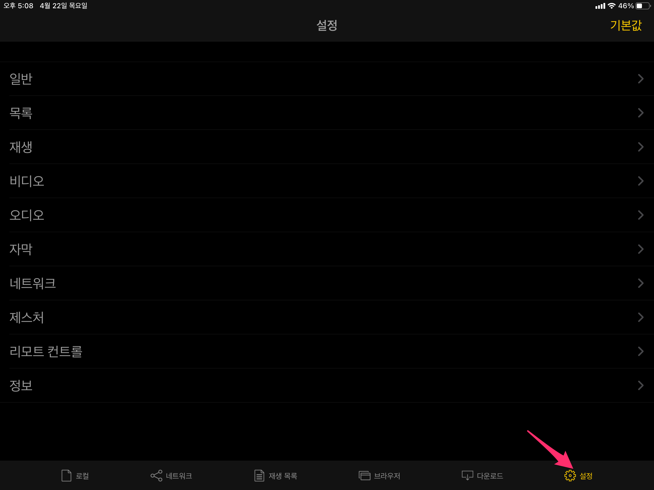 그리고 하단 메뉴 중에 마지막으로 설정으로 가시면 수많은 설정들이 있습니다.