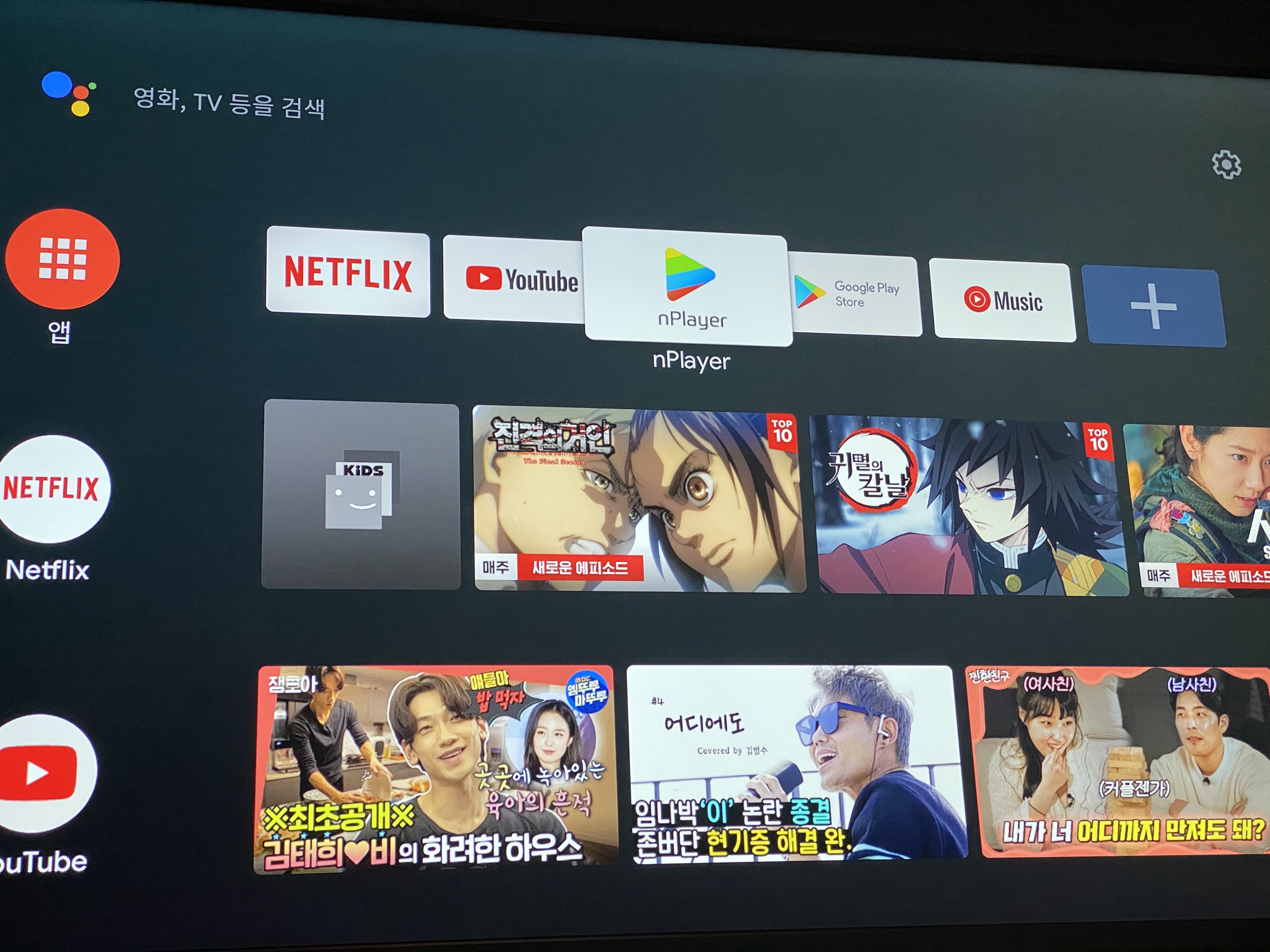 위 사진은 집에 있는 안드로이드 TV 화면입니다.