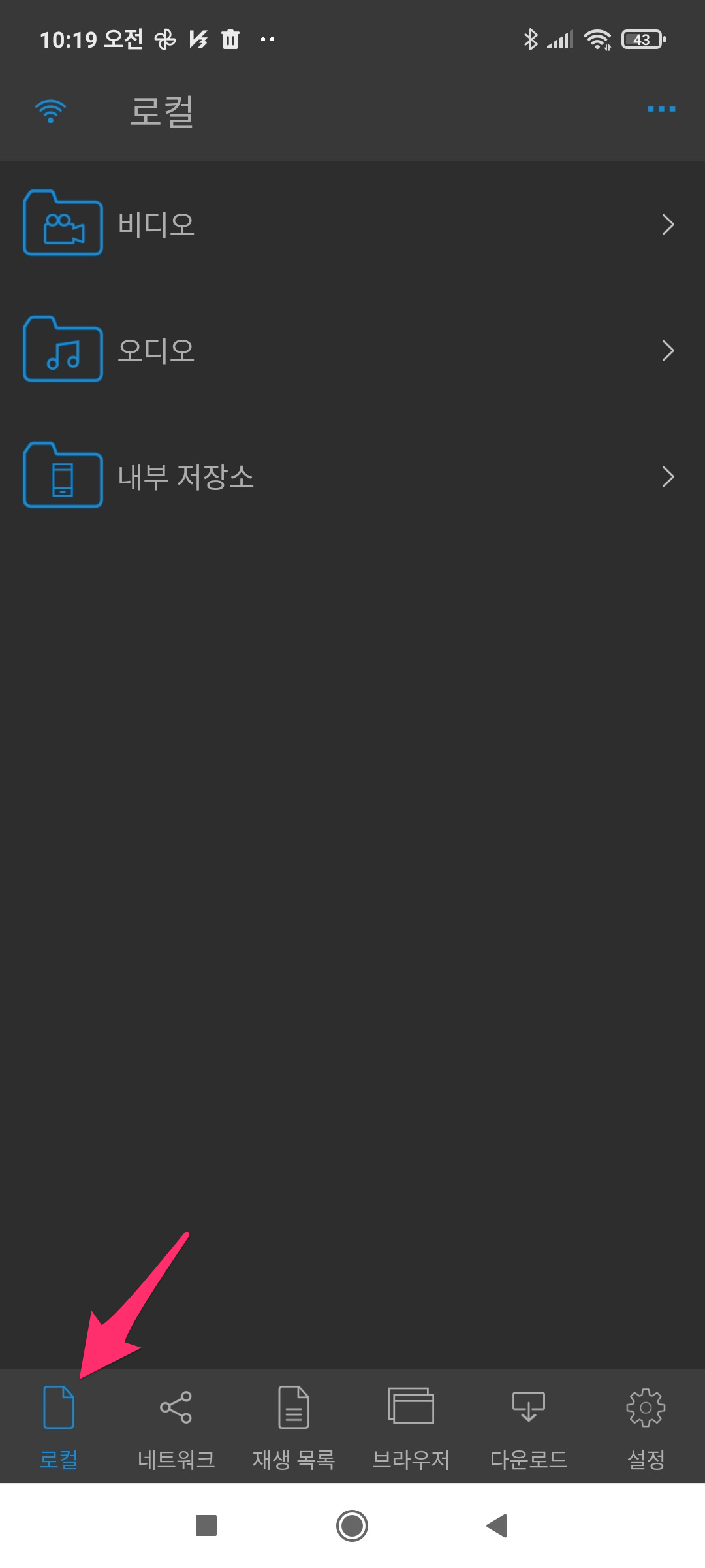 하단에 있는 로컬 메뉴를 선택합니다.