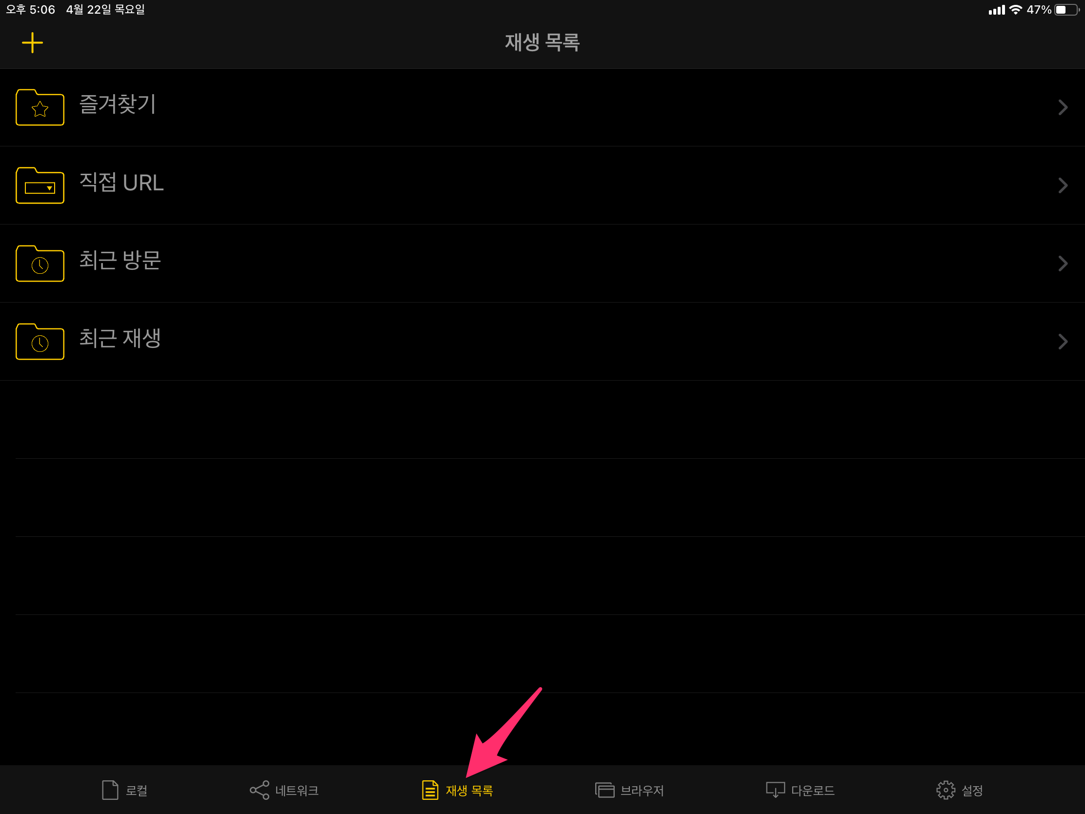 이제 하단 메뉴에서 재생 목록을 선택합니다.