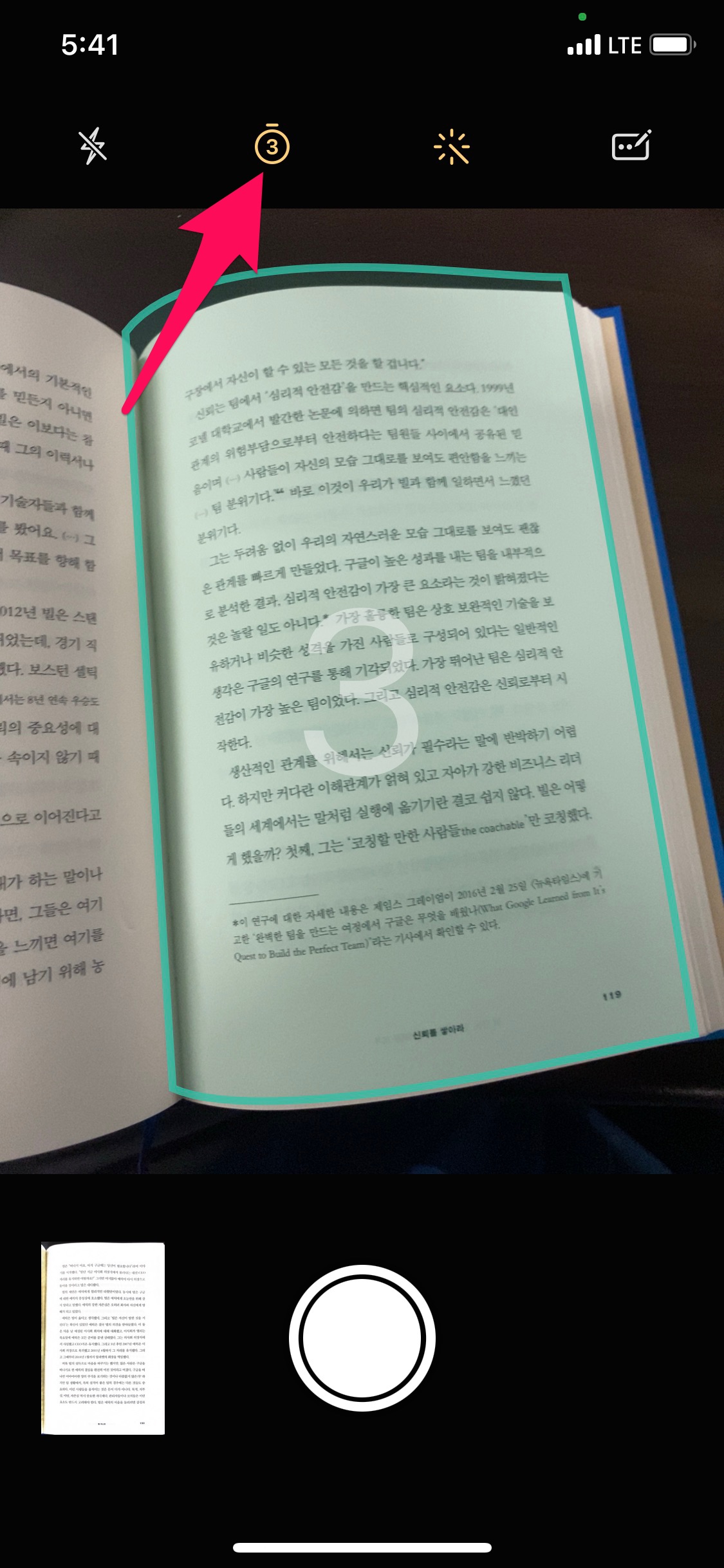 이 기능은 여러 페이지를 촬영할 때 페이지를 넘기고 촬영 버튼 누르는 방법을 반복해야 하는 번거로움을 해소합니다.