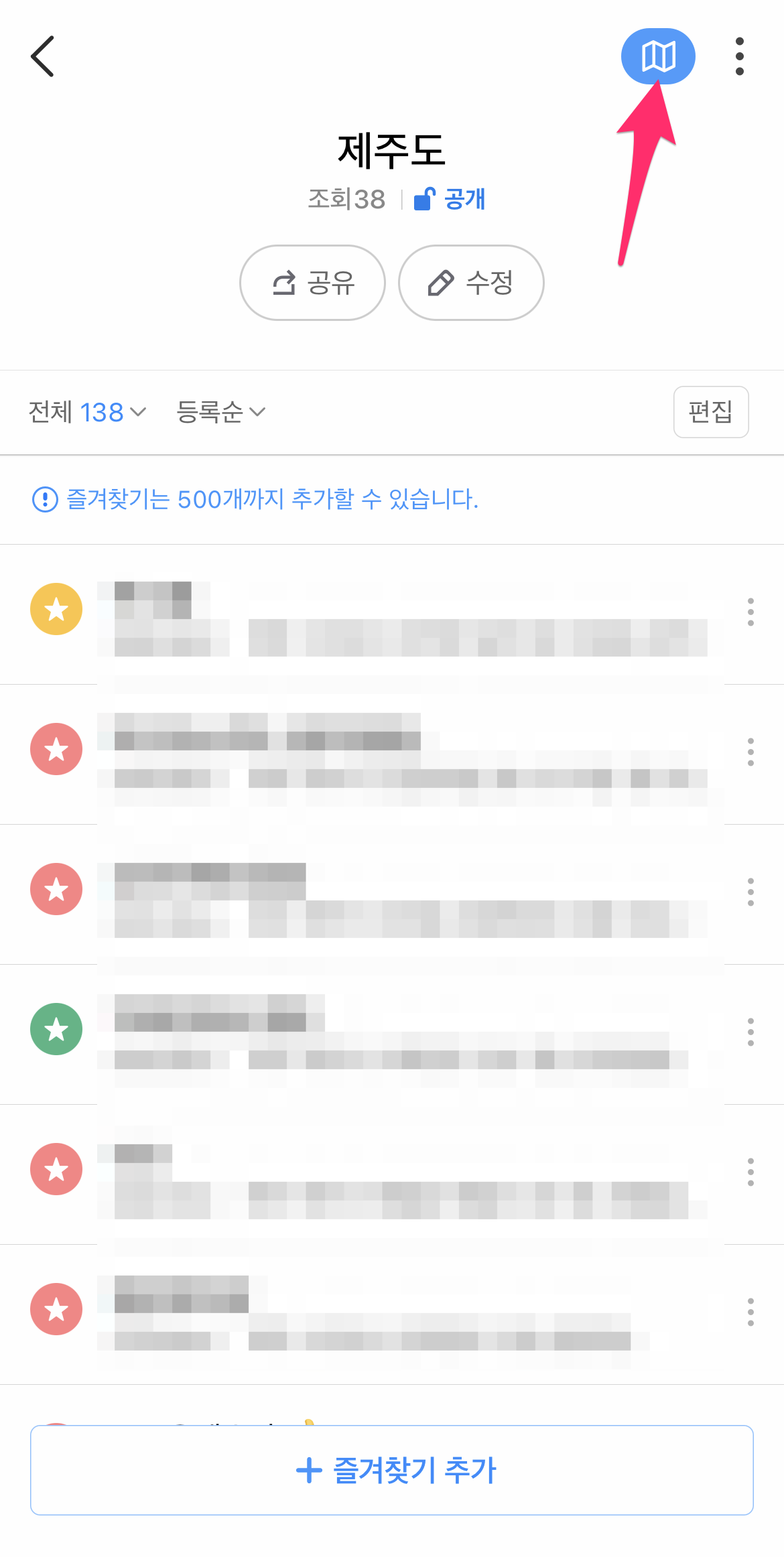 제가 자주 여행가는 제주도 그룹이 있습니다. 오래전부터 정리한 그룹이라서 138개나 있네요.