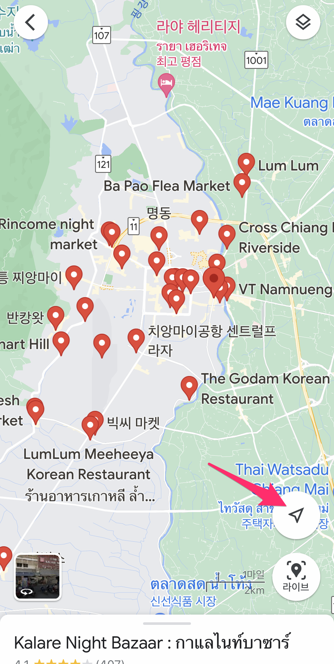 그리고 오른쪽 하단에 화살표를 선택하면 GPS로 현재의 위치를 확인할 수 있기에 주변에 저장된 위치를 참고하시면 됩니다.