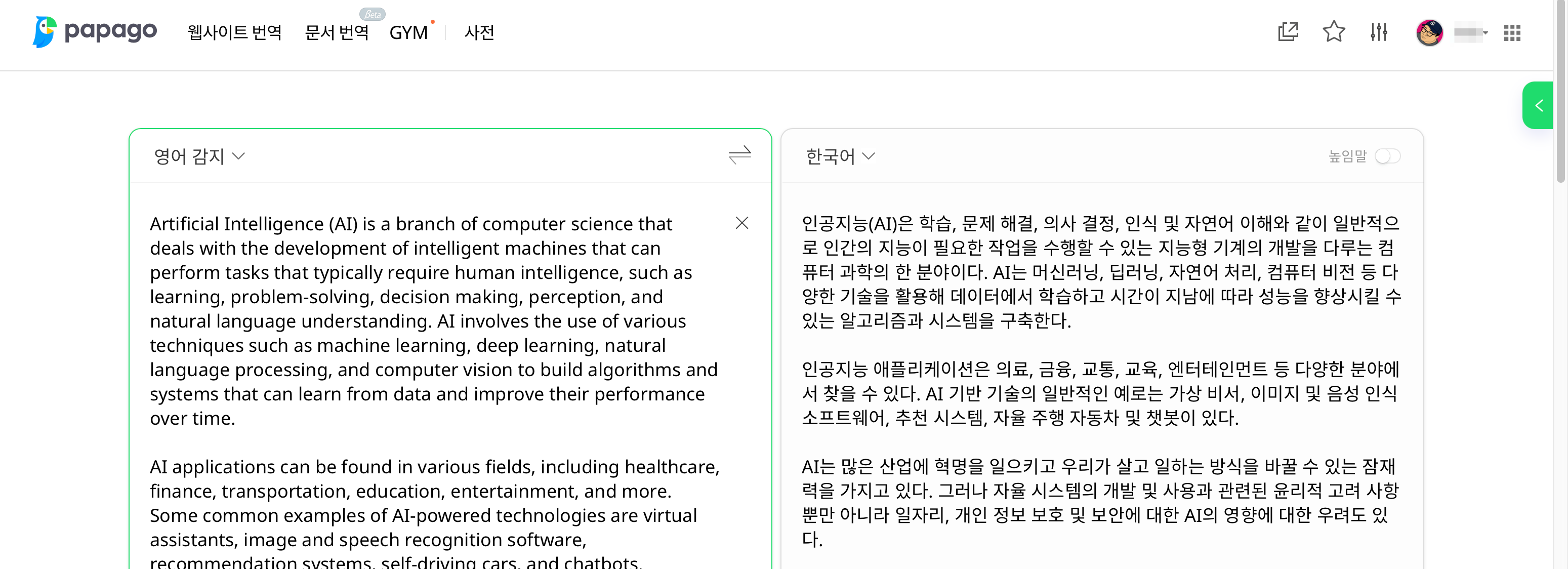 번역된 내용을 여러 번역 서비스로 돌려본 결과 거의 비슷합니다.